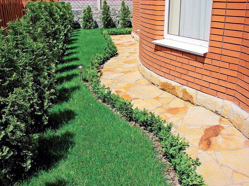 - Эстетичность. Можно использовать в отделке различные материалы, высадить сверху газон, разбить клумбу.