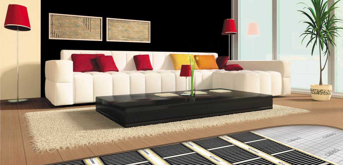 ИК теплый пол из карбоновых нагревательных элементов пропускает через себя ток. В результате этого процесса происходит инфракрасное излучение в диапазоне 5-20 мкм. Оно передает свою энергию предметам, находящимся в помещении, минуя воздух. Декоративное покрытие пола и вся мебель нагреется от излучающегося тепла, прогревая воздух.
