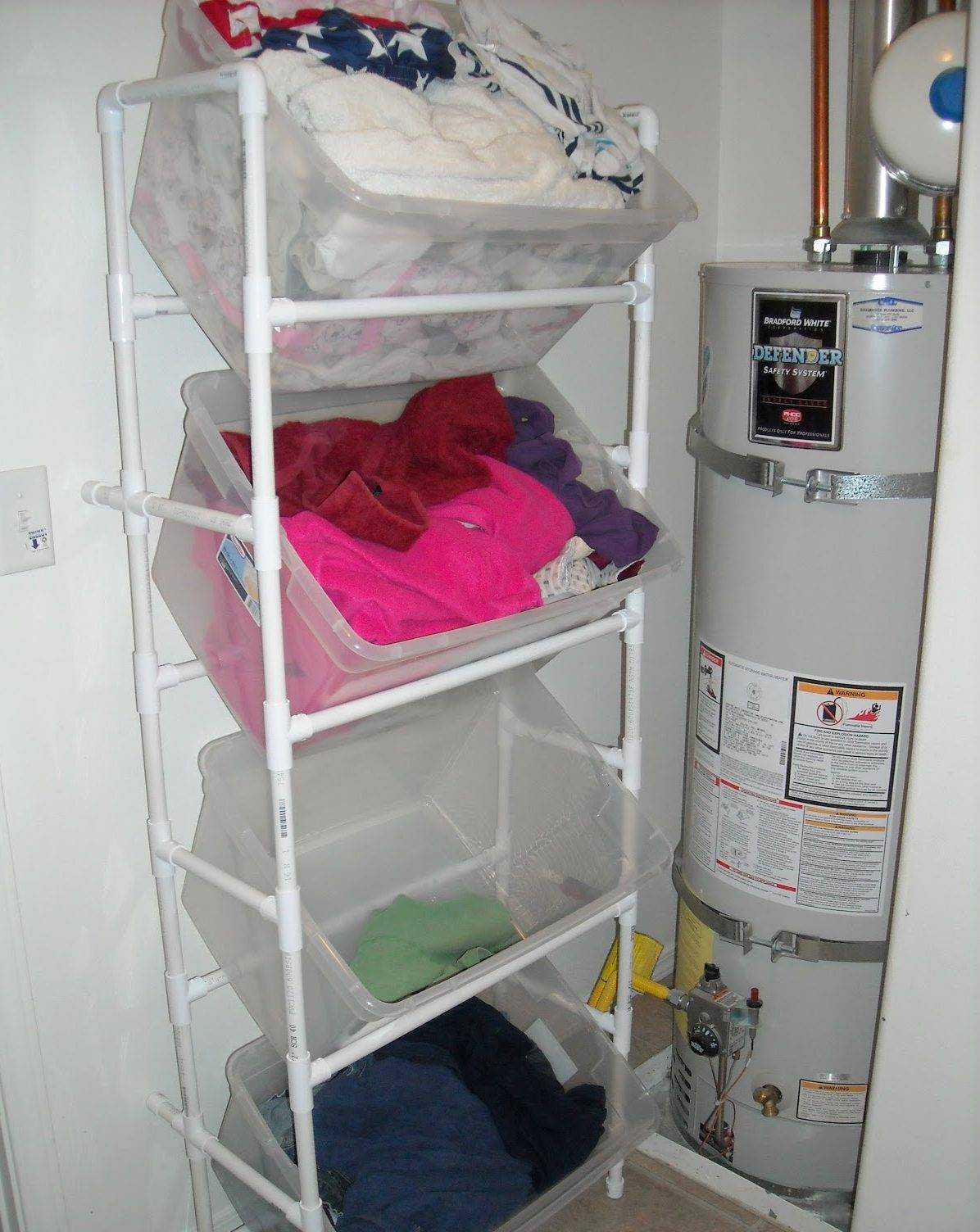 Подставка для хранения вещей из пластиковых труб для котельной