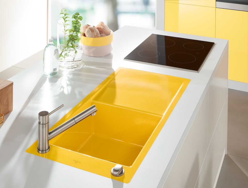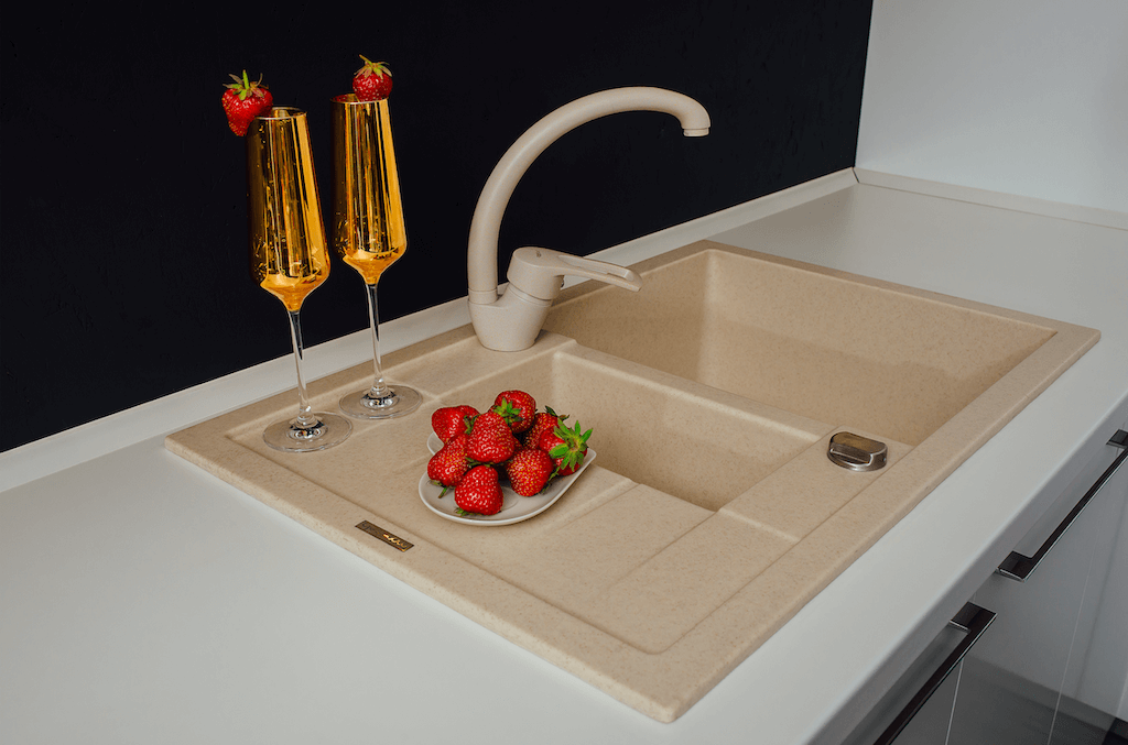 Для функциональной кухни лучше всего выбирать глубокий прибор: в нем можно будет мыть крупную посуду и другие габаритные предметы. Смеситель стоит подобрать невысокий — такое сочетание даст минимум брызг при работе
