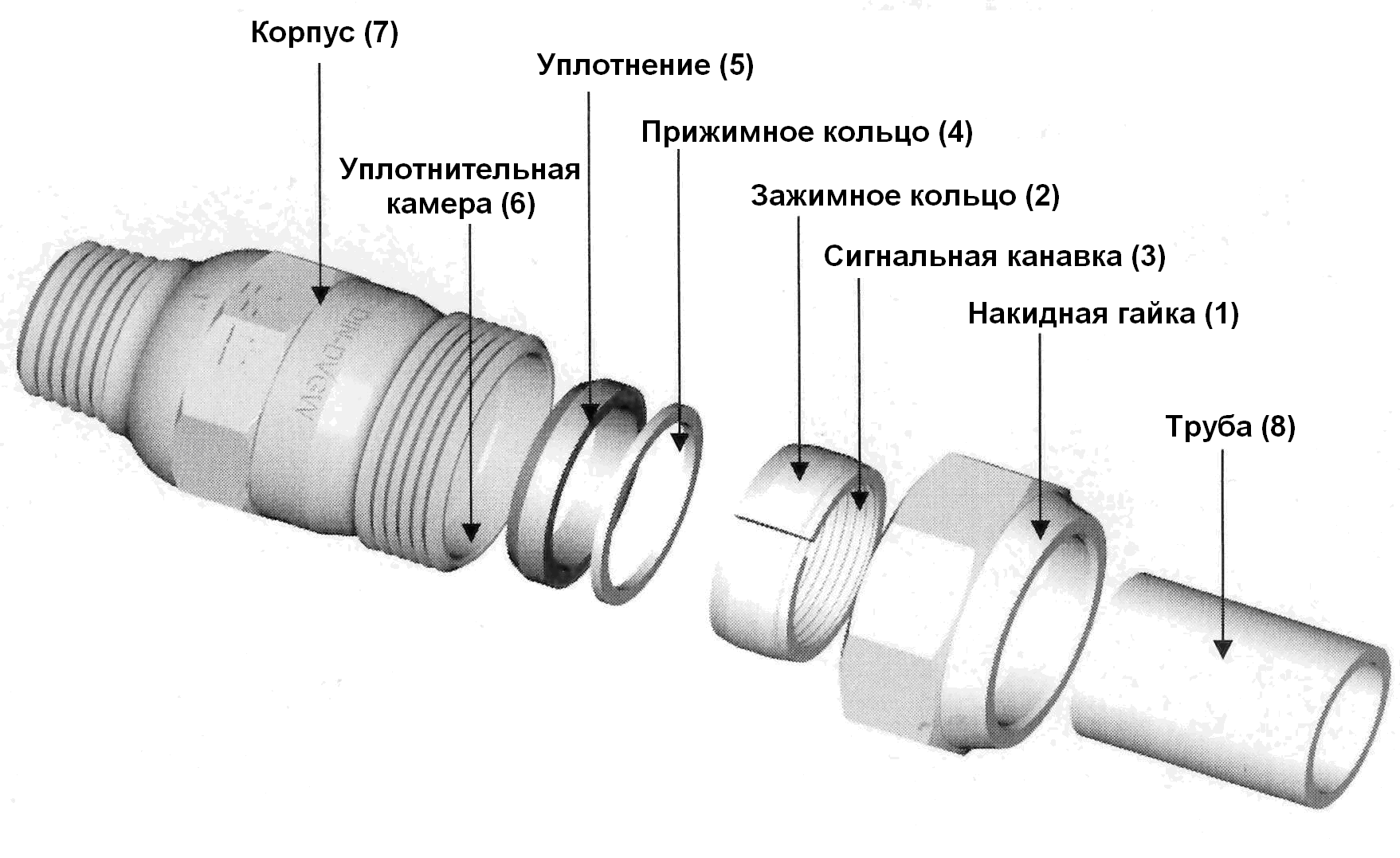 - Крепление фитингов без резьбы. Образуется неразъемное герметичное соединение высокой прочности.