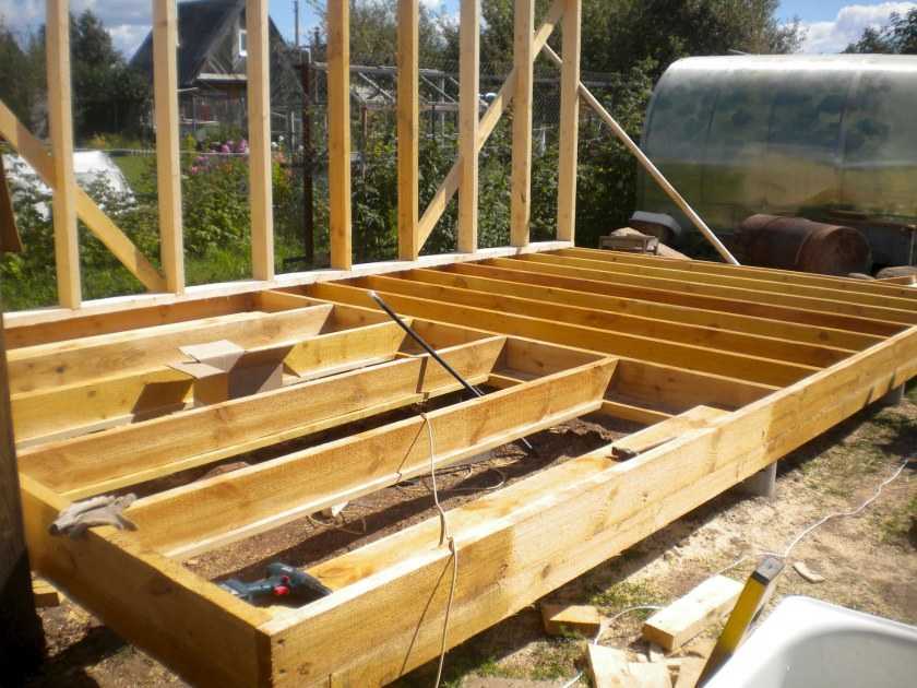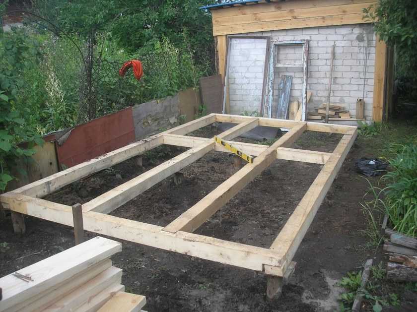 Инструкция постройки указывает на необходимость периодического контроля горизонтального уровня с помощью ватерпаса. В том случае, если выявлены отклонения, то кладутся прокладки из толя в несколько слоев. Монтируются стойки с учетом того, что в дальнейшем еще придется проводить работы по обшивке и теплоизоляции.