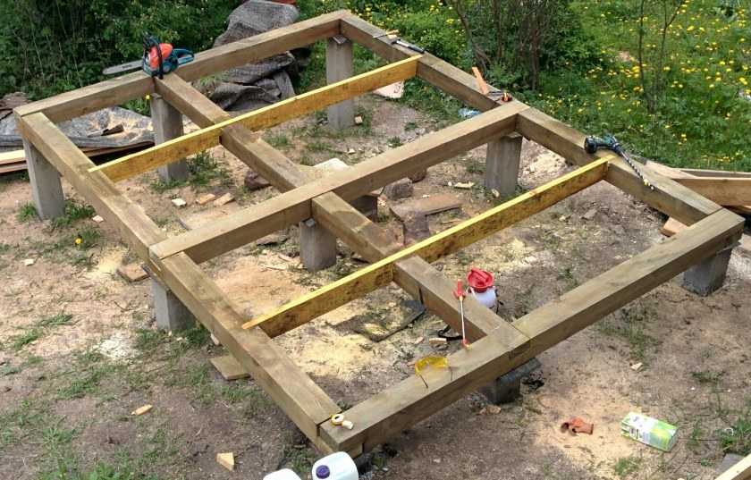 После заливки фундамента и его высыхания можно приступать к обвязке конструкции. Для нижней обвязки нужен крепкий брус сечением 100х100 мм.