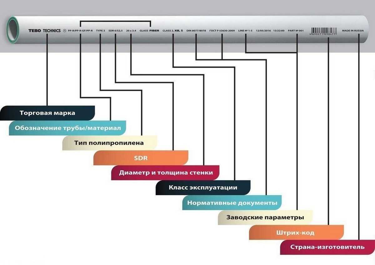Маркировка на трубе включает в себя несколько показателей. Основные и обязательные это: