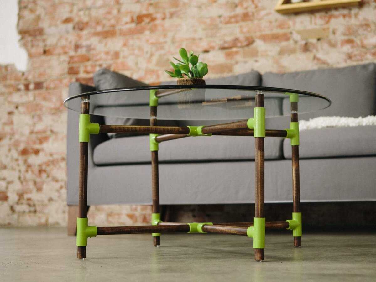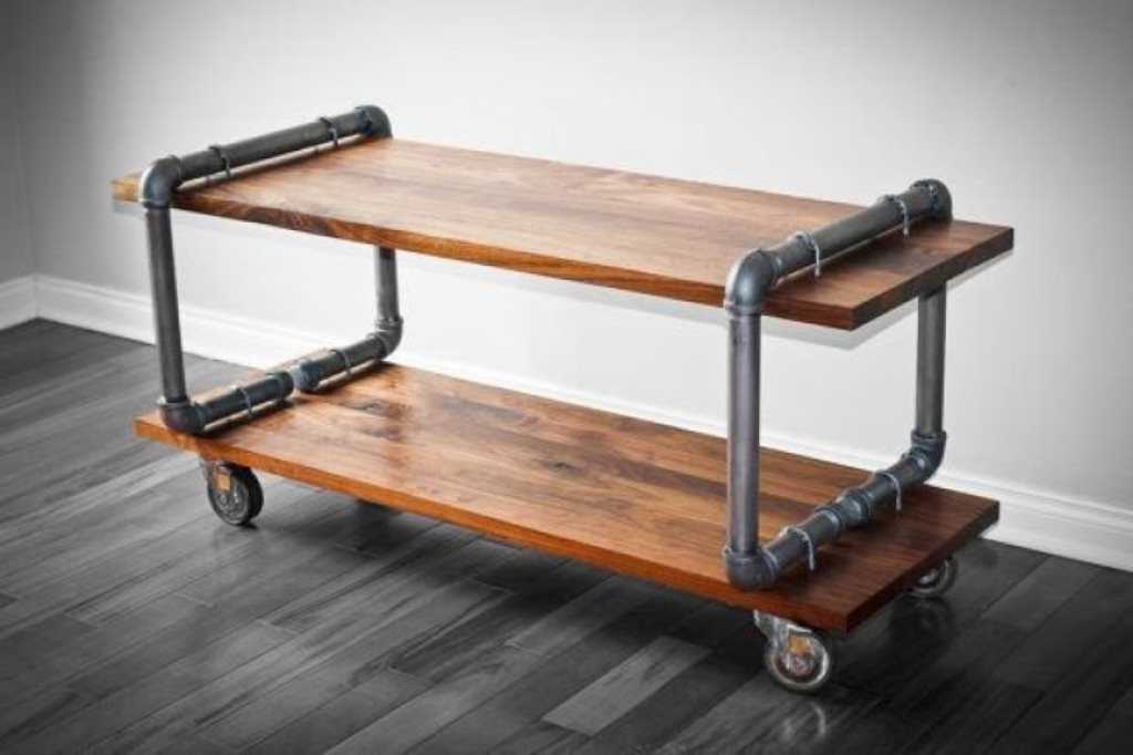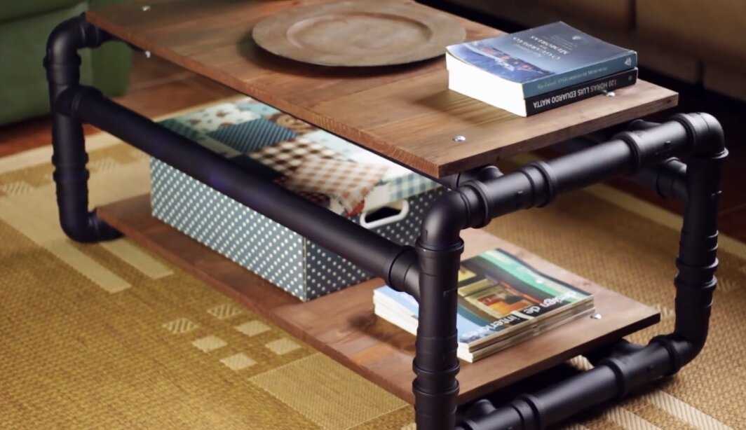 После этого нарезаются трубы, соединяются посредством фитингов. Если предусмотреть в конструкции перемычки – это сделает журнальный стол более прочным. Столешницу можно закрепить саморезами. Отличная идея – прикрепить на ножки мебельную фурнитуру колесики. Это позволит сделать данное изделие мобильным.