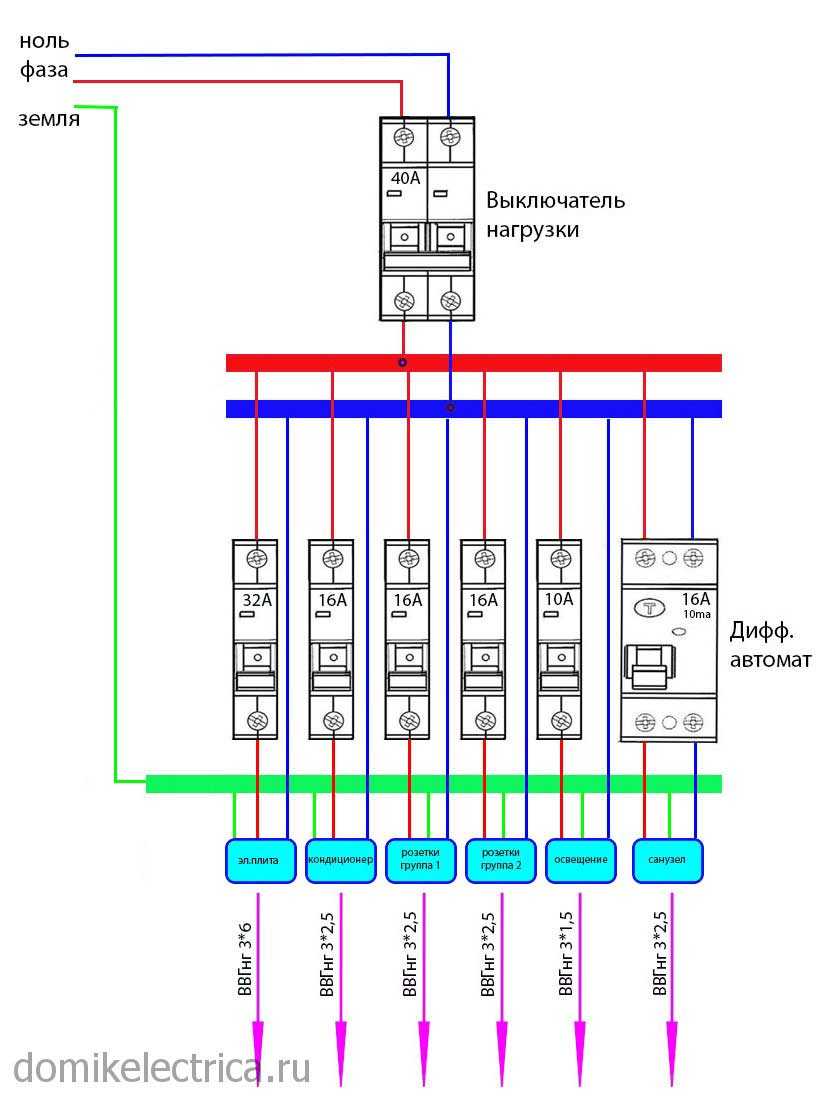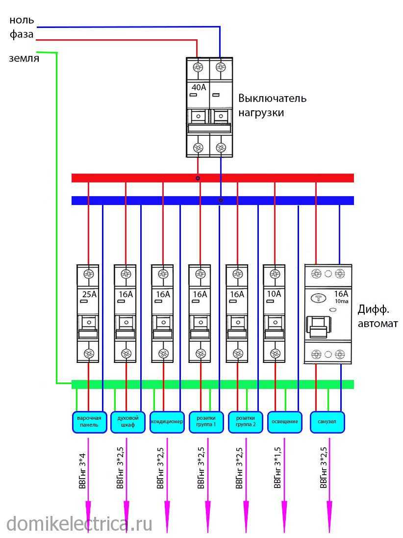 Для самых мощных приборов, таких как кондиционер, духовка, стиральная машина, предназначены отдельные электролинии и отдельные автоматы.