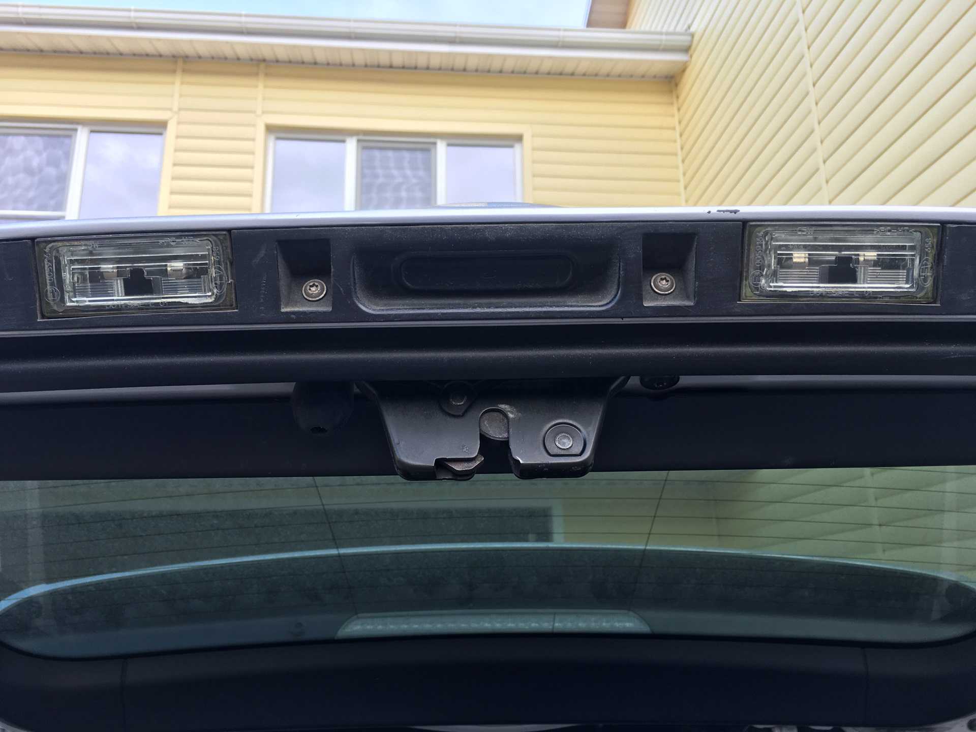 Заводская сборка предусматривает установку плафонов подсветки в нижней сабле багажного отсека. Плафон крепится рядом с рамкой, предназначенной для таблички государственного номера транспортного средства.