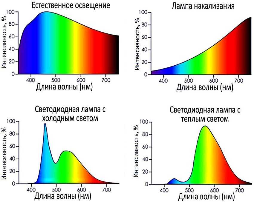 При небольшом угле свет концентрируется на участке возле лампы и захватывает небольшую полоску. Некоторые LED лампы имеют угол освещенности, равный 360 градусов Цельсия.