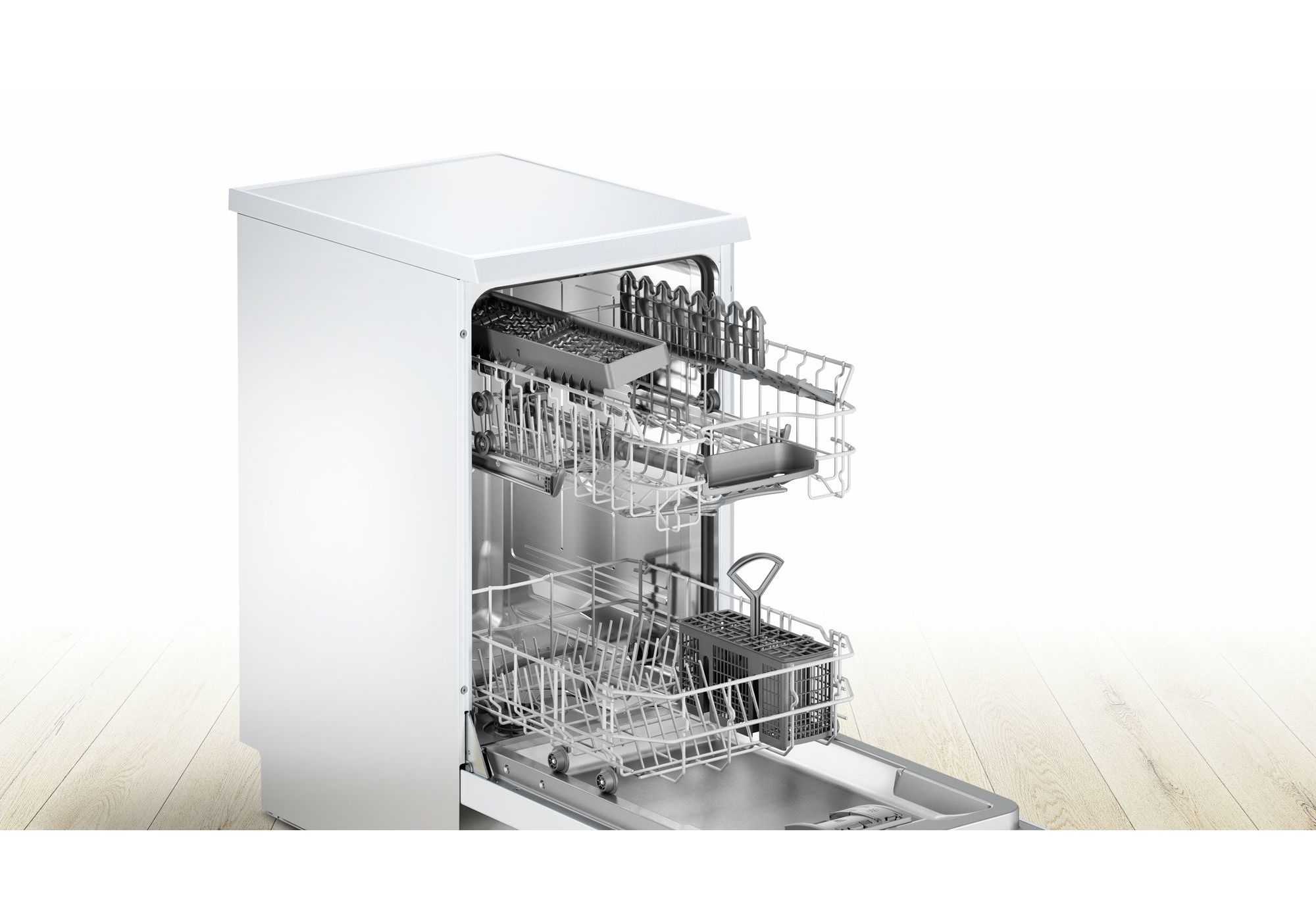 Это встраиваемая посудомоечная машина, габариты которой позволят без проблем разместить ее даже в небольшом кухонном шкафу. При этом, несмотря на свои компактные размеры, устройство вмещает в себя до 9 комплектов посуды. Так что с ее помощью вы сможете вымыть большое количество тарелок, бокалов, ложек и вилок после застолья в компании друзей или родственников.