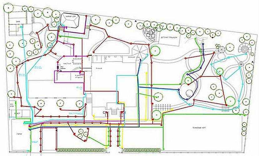 А если позволяет геометрия участка и расположение ввода, эту же траншею приспосабливают для одновременной укладки: