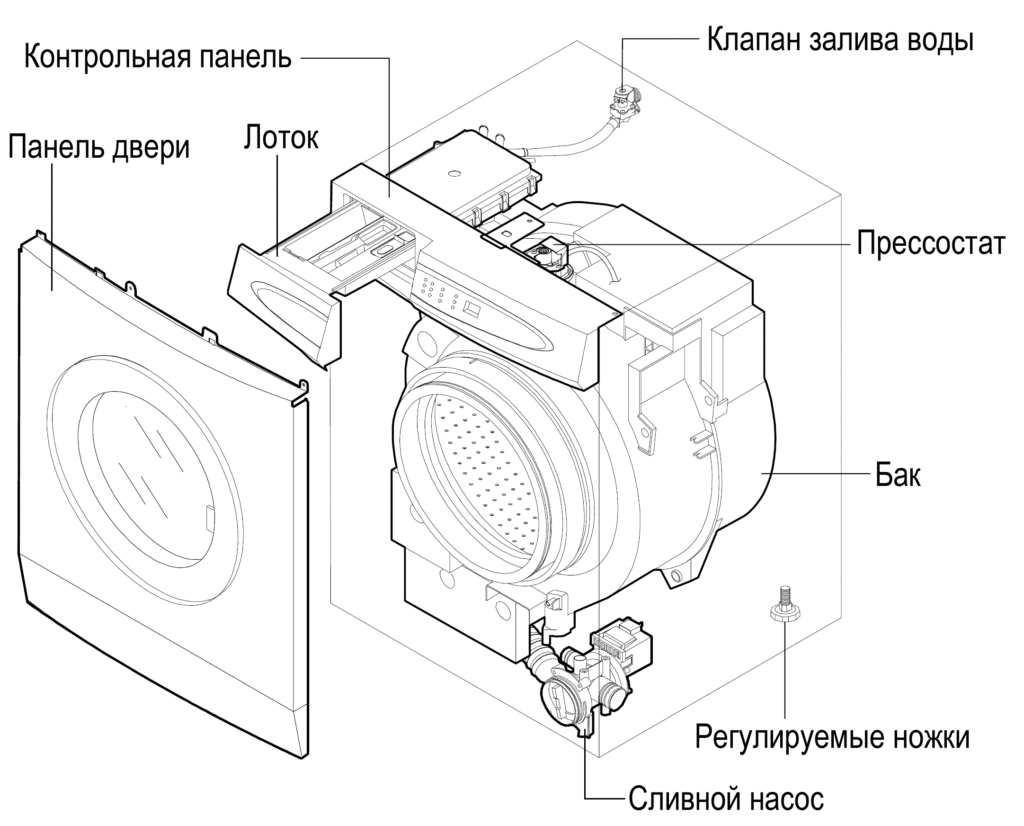 Для сборки стиральной машины применяют эти же действия в такой же последовательности, только в обратном порядке.