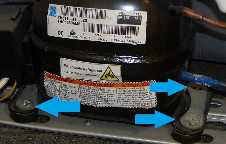 Крепеж компрессора холодильника, как причина шума