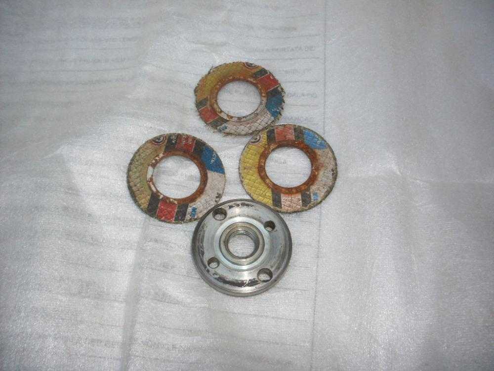 Сделал набор из «обмылков». Из таких, какие нормальные «болгарщики» выбрасывают. Не относя себя к таковым, накопил их…в,общем, много. Поэтому нашел легко: 2щечки, 2 проставки, собственно режущий. Трудность в том, что толщина пакета больше той, что можно отцентровать штатной болгарской гайкой. Пришлось «на глазок»…