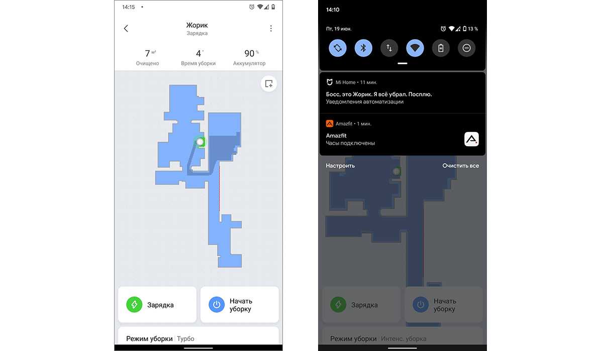 Контроль работы, настройка параметров, отображение карты комнат в режиме реального времени осуществляется дистанционно, с помощью мобильного приложения.