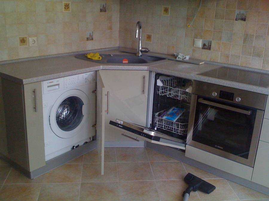 Соседний с моечным мебельный модуль – наиболее подходящее место, так как рядом располагаются узлы водоподачи и слива, поэтому легко подключить шланги. Длина шлангов не должна быть большой, иначе затрудняется подача и отвод жидкости, что нередко приводит к поломкам