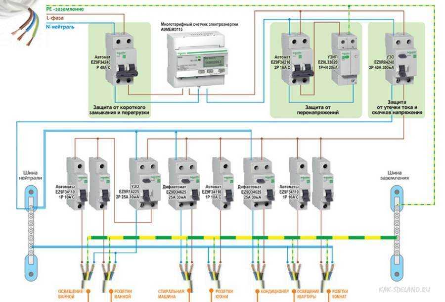 - Схема электрического щита на 3 автомата защиты