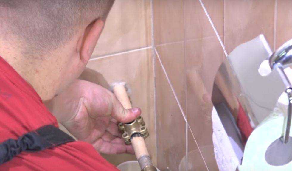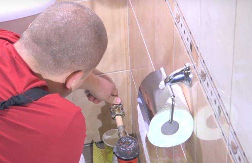 угловой кран 1. Вырезаем сквозное отверстие в стене для вставки крана. Для этого лучше всего использовать электродрель. После закрываем неровности плиткой. С другой стороны вырезаем отверстие в трубе (как в случае с установкой муфты) и прикручиваем переходник.