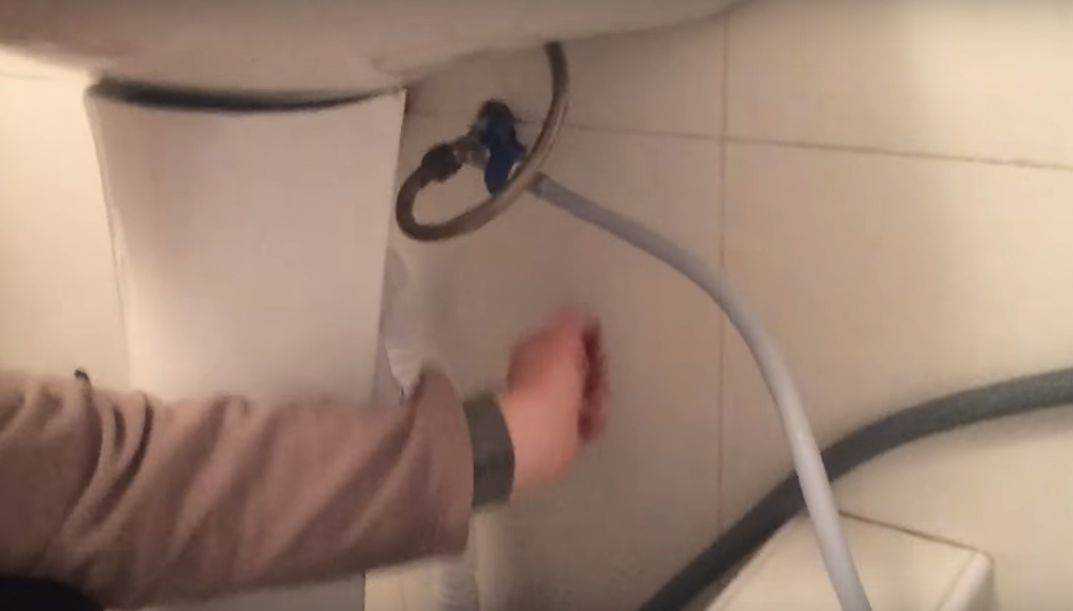 К водопроводу машина подключается полутораметровым шлангом в двух точках. На шланге с обеих сторон установлены штуцера с накидными пластмассовыми гайками. Сначала один конец шланга с г-образной законцовкой привинчивается к штуцеру на задней стенке машины. Затем другой конец присоединяется к штуцеру, заранее установленному на водопроводную трубу. Никаких дополнительных уплотнений соединения делать не требуется, гайки самоуплотняющиеся. Закручивать их надо рукой, ключи здесь не нужны.