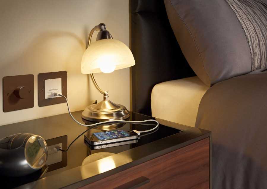 При ремонте хозяева часто задаются вопросом, на какой высоте ставить розетки в спальне. Один включатель традиционно размещается у входа. Если в комнате будет установлена двуспальная кровать, то для комфортного использования можно расположить электророзетку с выключателем по обе стороны спинки, на расстоянии 70 см от пола. Тогда не возникнет проблем с зарядкой телефона на ночь и включением/выключением основного света или бра.