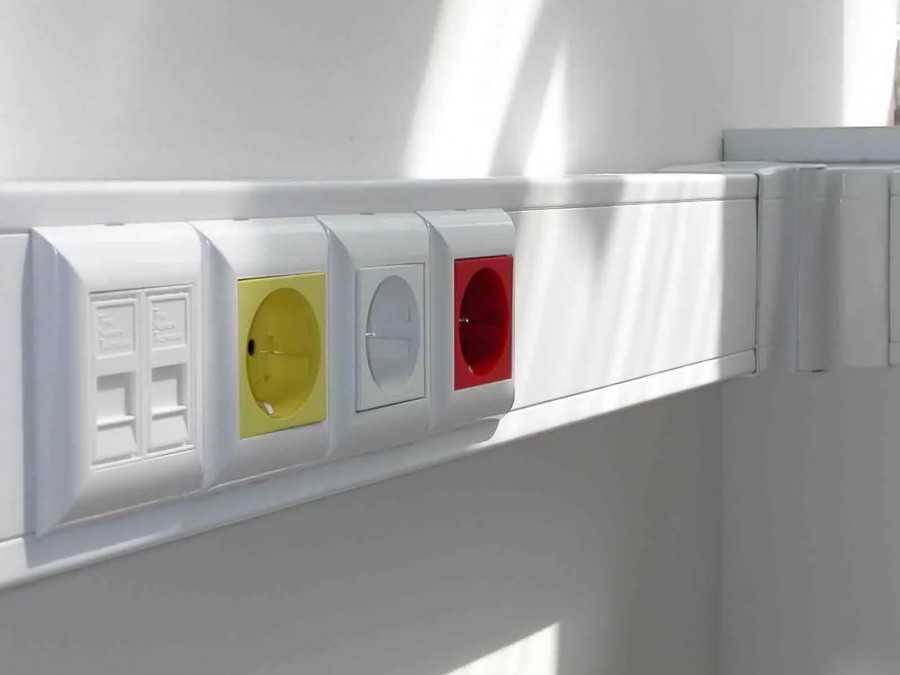 Интересный момент: чтобы не штробить и не сверлить стену под каждый электроприбор в отдельности, можно использовать специальную установочную планку. Гнезда для подключения техники и выключатели на ней крепятся в наиболее удобном порядке, а провода проходят в каналах планки.