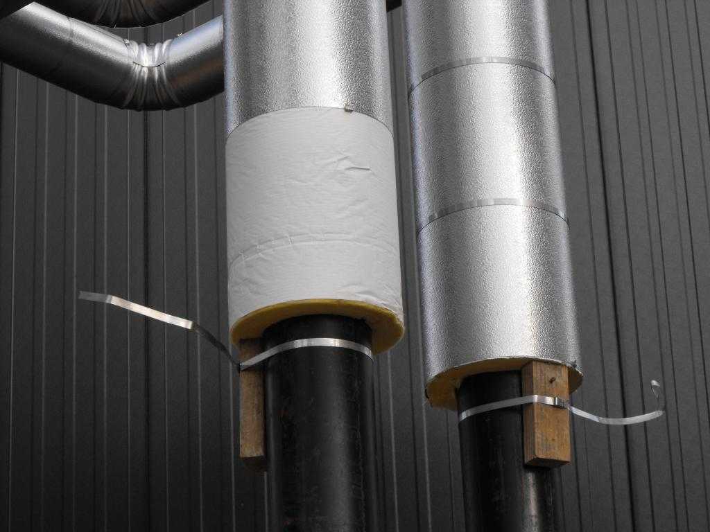 Стекловату и минеральные маты оборачивают вокруг трубы и фиксируют при помощи скотча или защитных кожухов.