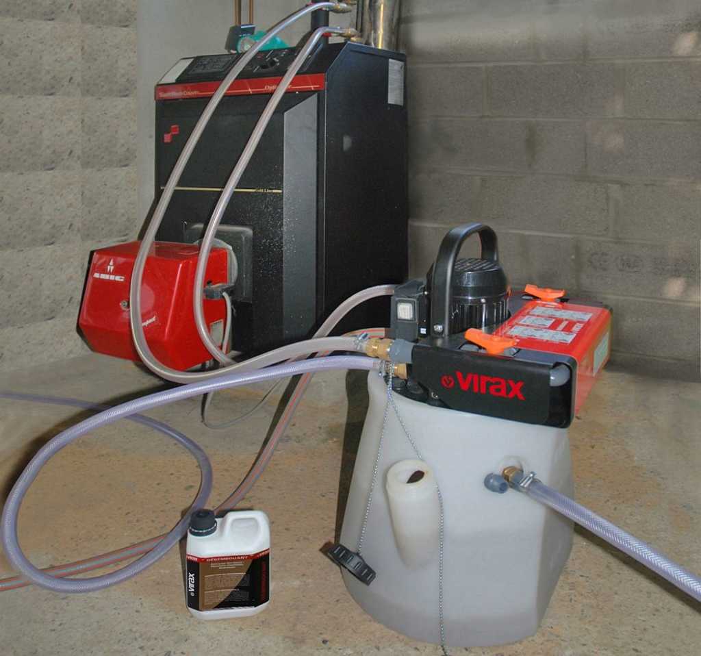 Химический способ. Позволяет промыть свой котел без демонтажа теплообменника, но требует использования специального оборудования – бустера.