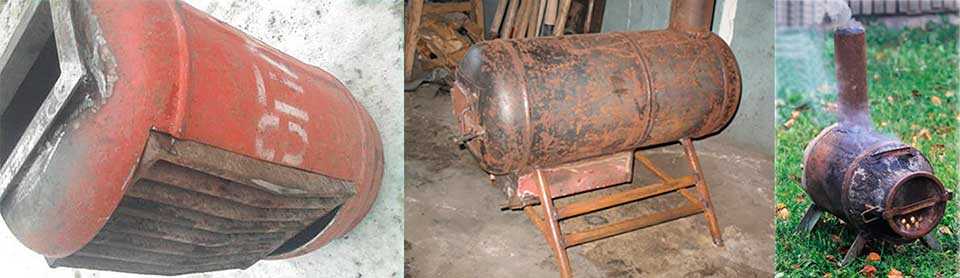 Корпус. При изготовлении корпуса из газового баллона, у него необходимо аккуратно срезать верхнюю часть (линия реза на 1 см ниже сварного шва). При желании корпус можно нарастить, приварив отрезанную часть другого баллона. У бочки так же срезается верхняя часть с крышкой. А если для корпуса выбрана труба, к ней следует приварить круглое или квадратное дно из толстого листового металла.