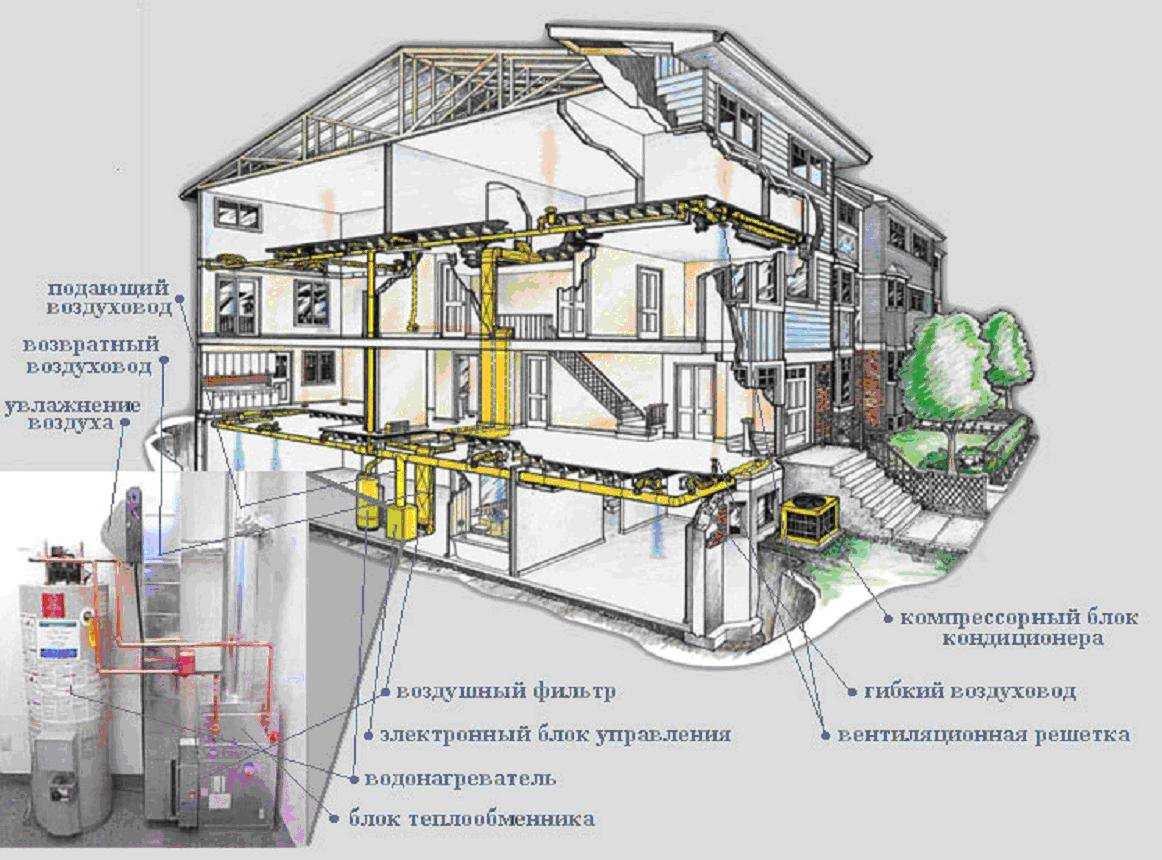 - Возможность совмещения отопления с современными системами вентиляции и кондиционирования.