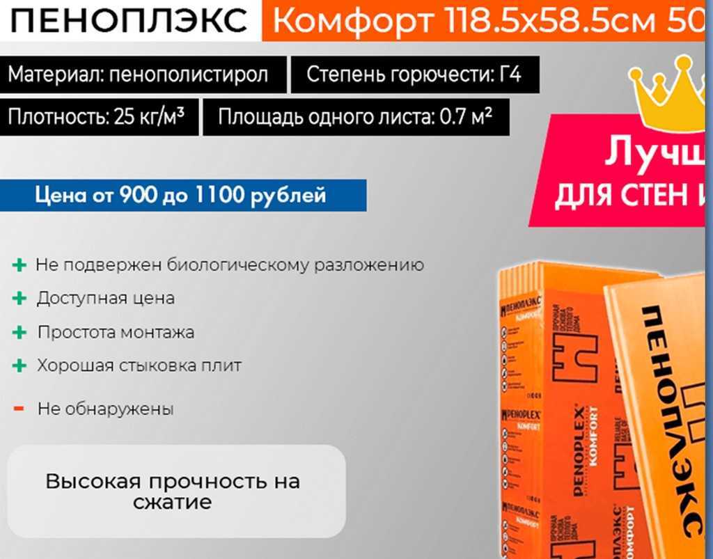 Лучшая теплоизоляция для стен и пола (XPS) Пеноплекс Комфорт