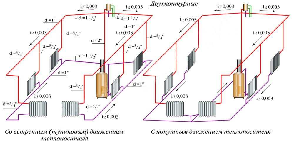 Попутный вариант позволяет легко контролировать уровень тепла, но необходимо увеличивать длину трубопровода.