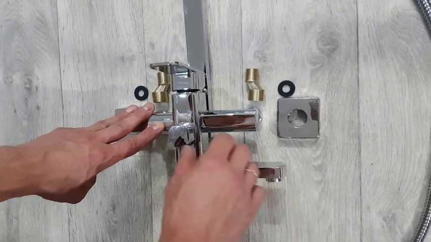 Установка выполняется следующим образом. Монтаж начинается со смесителя. Трубы для горячей и холодной воды должны находиться на одном уровне, иначе стойка будет установлена криво. Правильность расположения самого смесителя обеспечивает планка, которая идет в душевом комплекте. Подключается смеситель при помощи уголков, которые крепятся к планке винтами. Далее смеситель соединяется с трубами посредством резьбовых частей. Для резьбы обязательно применяется уплотнительная обмотка.