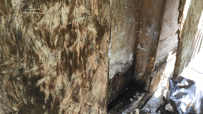 OSB сгнил от сырости. Вид с улицы после демонтажа фасада