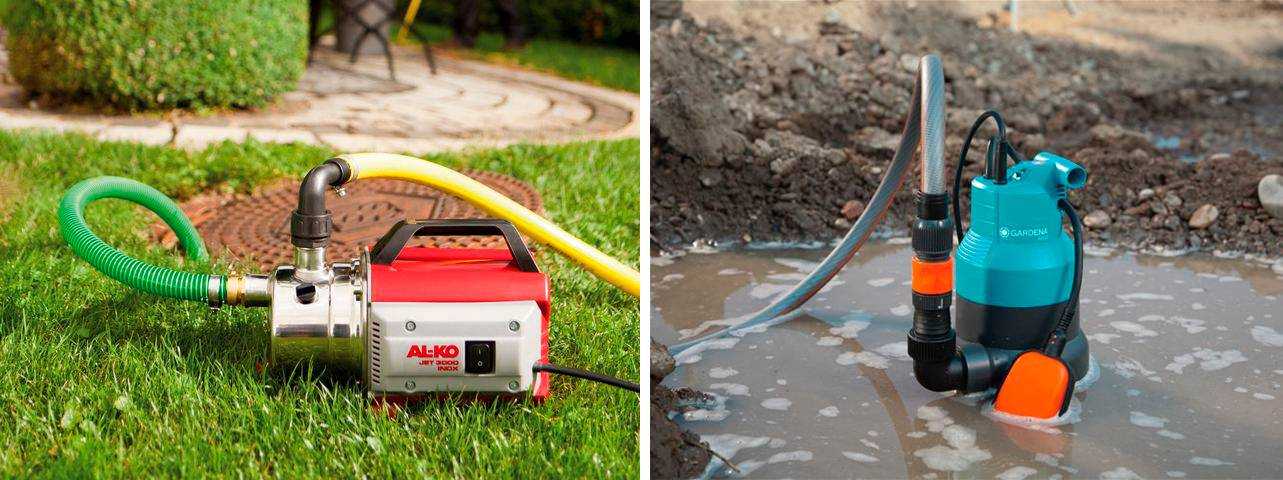 Такие модели устанавливают над резервуаром. Устройства размещают на ровной поверхности в сухом месте. Насосы этого типа имеют входную и выходную трубу и могут работать автоматически. Для этого к тумблеру включения присоединяют механизм, который реагирует на уровень жидкости. При заполнении погреба или впадины на участке насос начинает автоматически откачивать воду до тех пор, пока не сработает поплавковый механизм, сигнализирующий об отсутствии жидкости.