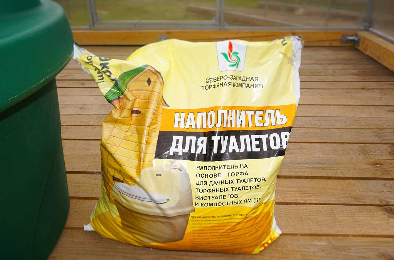 Обычный торф для биотуалета использовать нельзя — в нём слишком мало нужных микроорганизмов. В качестве засыпки нужны покупные составы, в которых содержатся бактерии, перерабатывающие отходы: