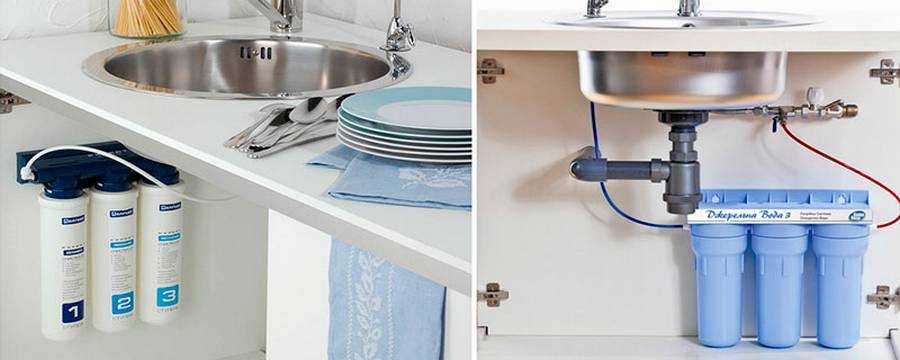 Фильтры проточного типа занимают совсем немного места под мойкой