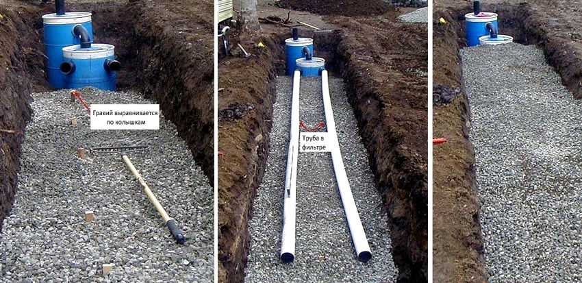 - при выкапывании всех траншей учитывать нужно угол наклона (1–2 градуса), для лучшего стока воды.