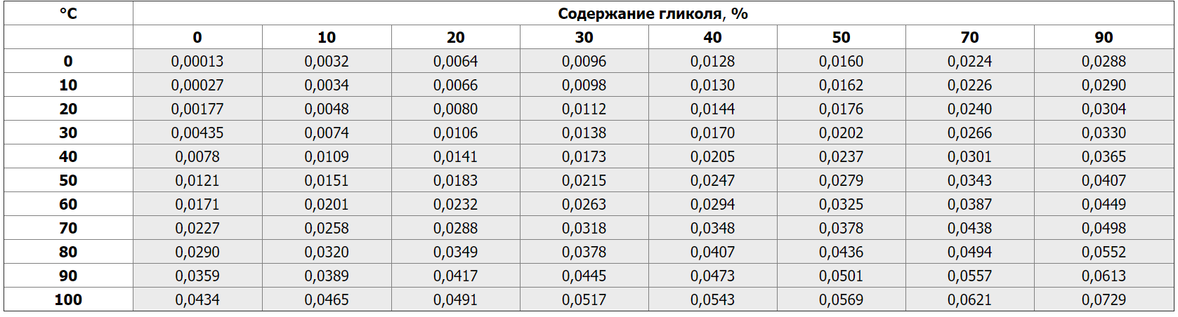 коэффициент теплового расширения берется из специальной таблицы. Все зависит от процентного содержания водогликолевой смеси в антифризе.